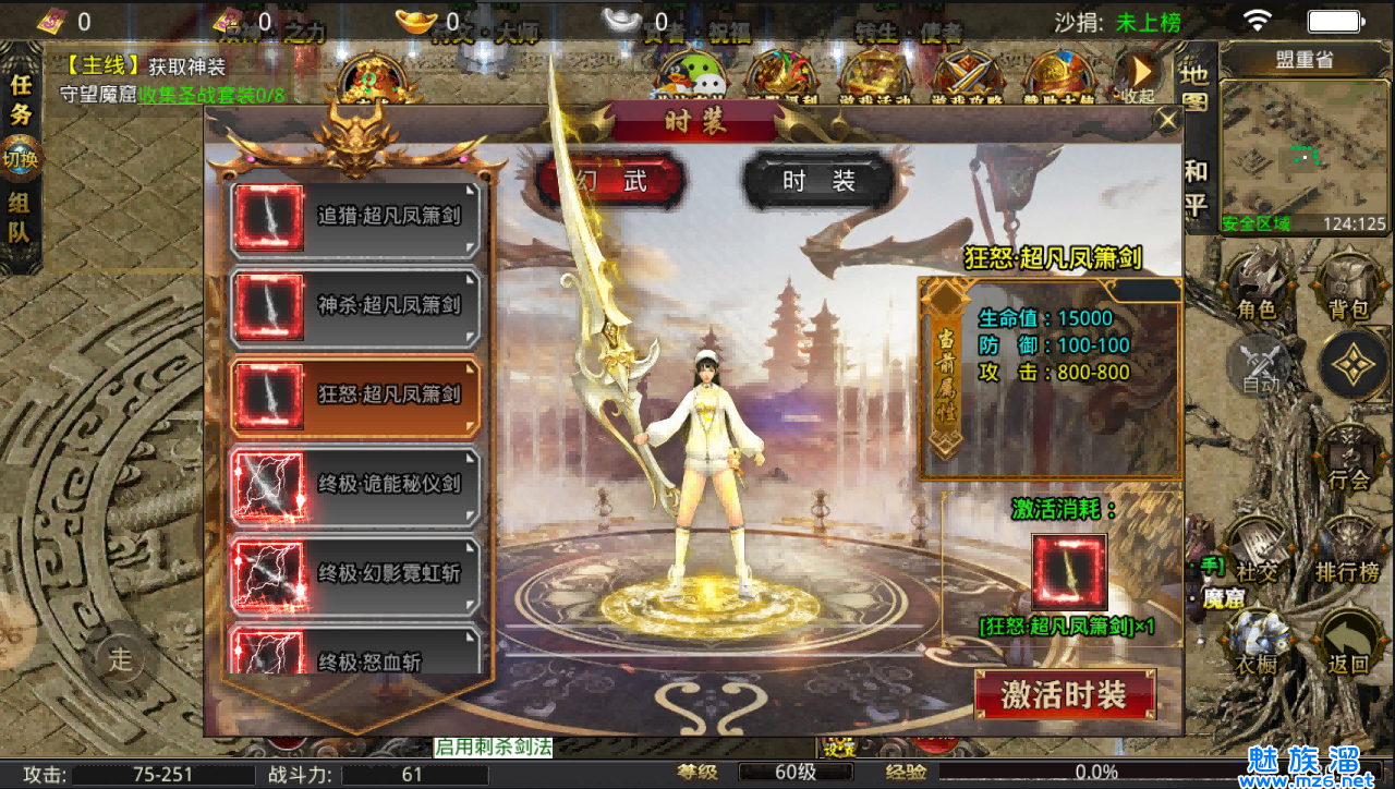 大量厉害的武器供你使用,注意哦!穿戴时装以及武器是可以提升战力值的
