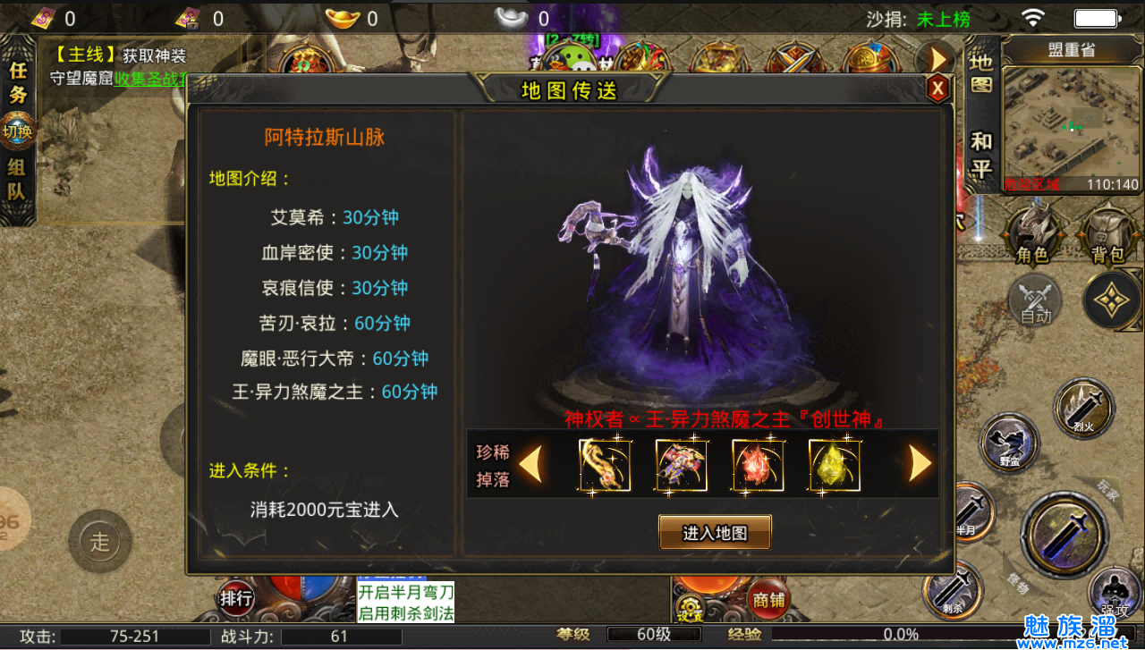 至高众神之王是一款玩法多样,体验刺激好玩的冒险闯关游戏,根据设定,玩家将在各个副本中敌人对战,不断提升技能的伤害和等级,与更多强劲的boss战斗,喜爱传奇类战斗游戏的玩家快来下载试试吧。