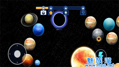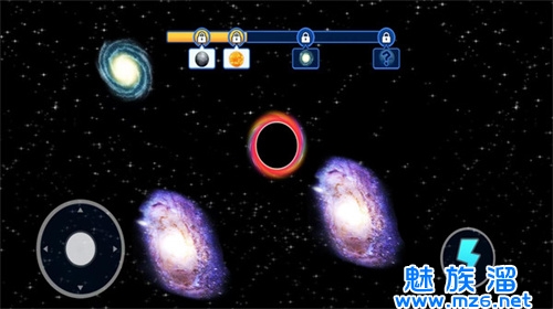 可以让玩家自由的控制黑洞在星空游走,吞噬其他星球。