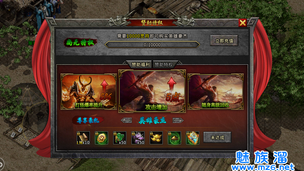 1、装备秒回收,换取元宝提升实力,还能购买各种商城道具。
