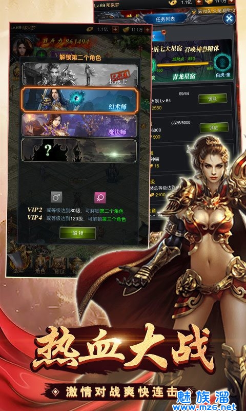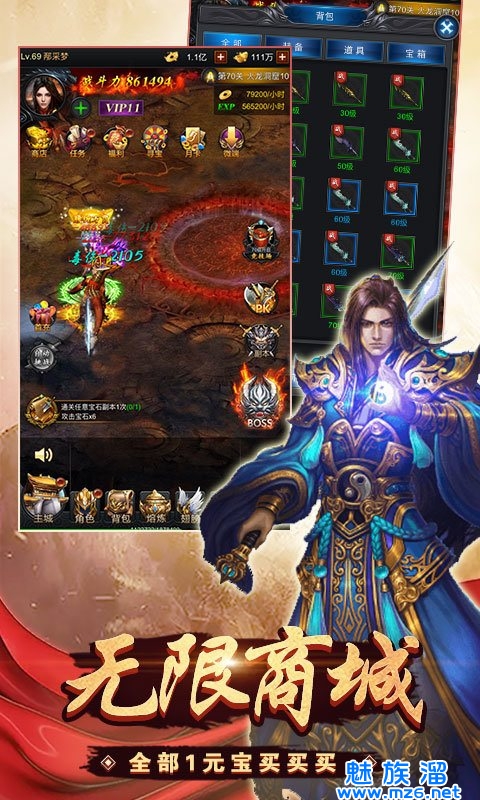 3、经典再现还原端游场景,高爆玩法轻松解锁稀有装备,万人同服热血激斗。