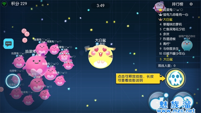 《欢乐球吃球》是北极光工作室出品的腾讯首款创新休闲竞技手游。游戏采用大球吃小球经典玩法,操作简单易上手,又融入Q萌可爱的精灵收集,道具乱斗的创新玩法和线上线下的亲密社交圈。在游戏中既可组CP、撩萌新,联手基友闺蜜叱咤双人模式。也能加战队、组稳团,5人排位一路并肩超神!赶快加入《欢乐球吃球》,趣味无穷,一口吃定你!