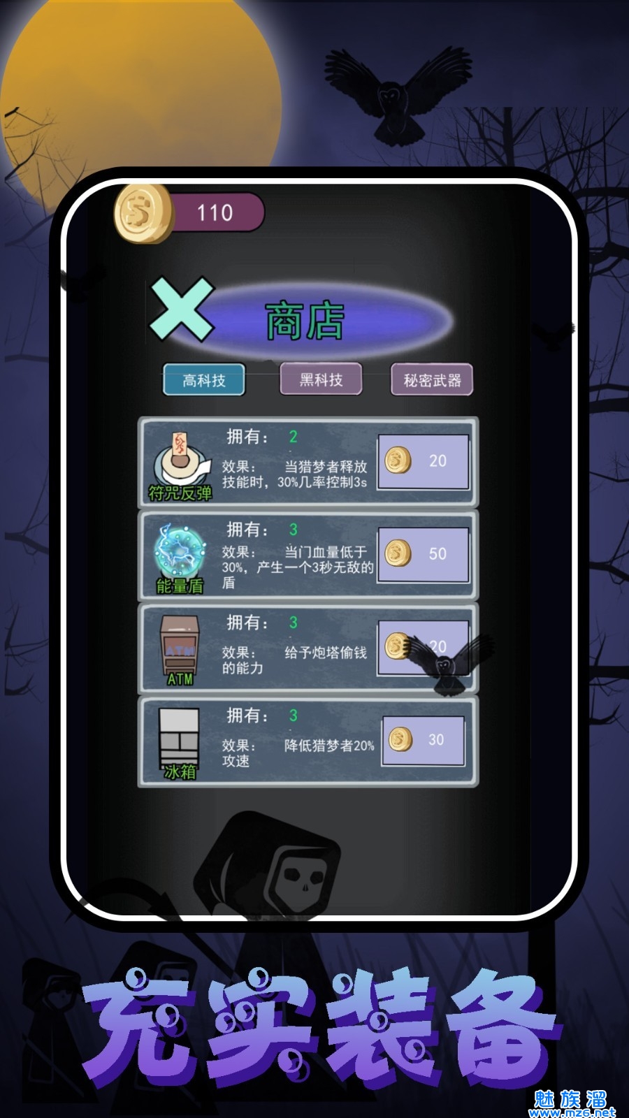 2、你的任务就是要抵挡住猛鬼入侵的步伐,时刻手握武器准备开启战斗。