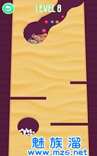 1、手指触摸屏幕就能引导小球的走向,在画面上滑动就能挖出道路,非常的流畅快速;