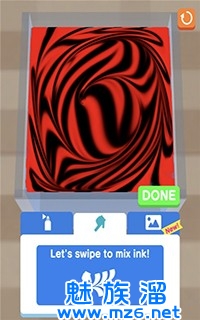 在水面上滴入染料,划动屏幕即可搅拌调制花纹,最后再把模型上色,完成你的大作。