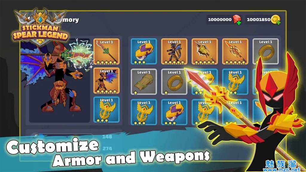 火柴人长矛传奇(Stickman Spear Legend)这是制造超级精良的火柴人主题游戏,我们能够为本人的火柴人打造超帅气的神甲,还有各种神兵武器。游戏有对战形式和剧情形式,剧情形式让你去应战boss,获取超强神器,也有对战玩法,你可以和其他的玩家共同竞技,来尝试哦。