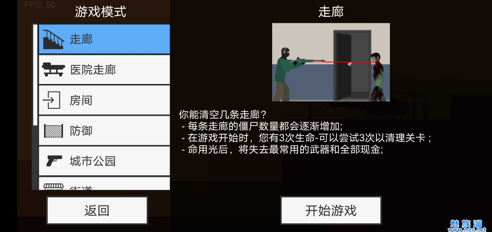 2、游戏的主要内容是与各种僵尸战斗,不断地杀死它们,抵抗僵尸对你的不断攻击。