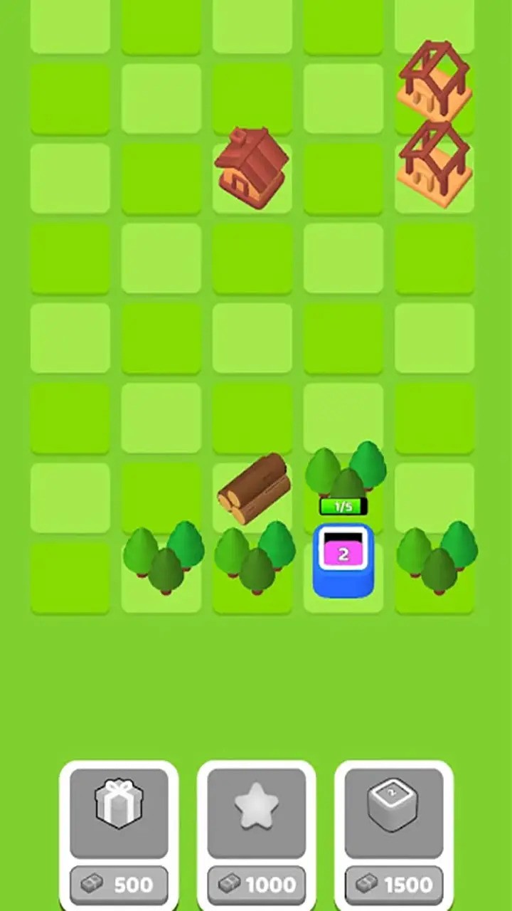 1、当合并的方块达到一定数量时,它们将会自动升级并转化为一个更大的房子;