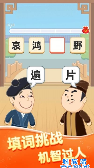 1、根据游戏提示,检索场景中提示的成语,并快速输入完成闯关或挑战等任务进行胜利。