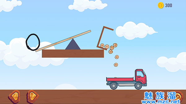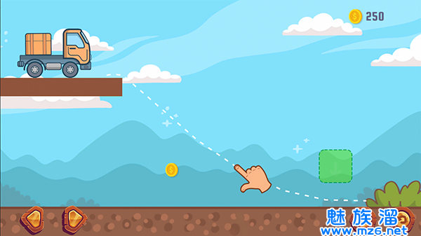3、你需要巧用限定的材料,绘制出稳固的桥梁,让卡车安全通过。