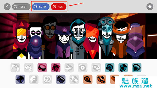 2、精致魔性的人物角色看着你需要你不断的点击音符来消除他们的面具。