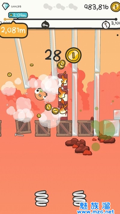 你可以收集各种道具来进行助力,让这些逗趣的角色飞得更远,以便收集到更多的金币和能量。