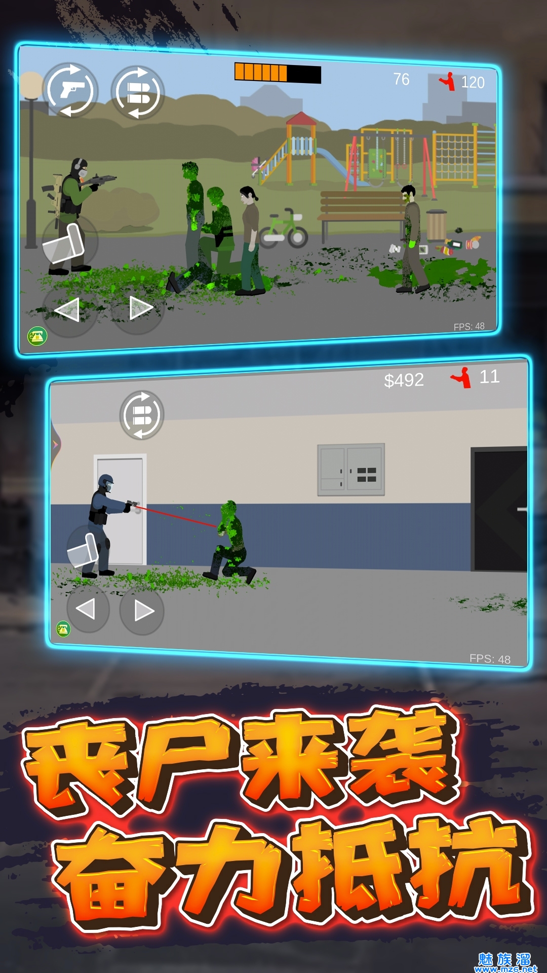 2、操简单的易上手控制,让你尽情畅爽的体验厮杀僵尸的乐趣