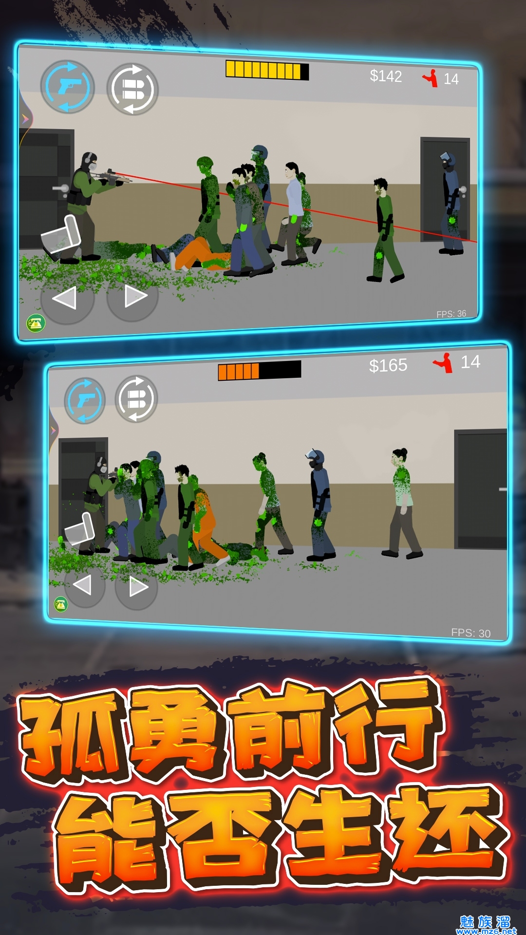 5、消灭所有的僵尸即算通关,根据击杀僵尸数量和爆头率获得金币奖励
