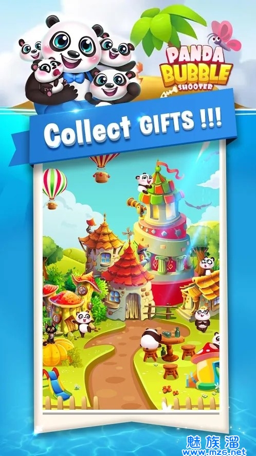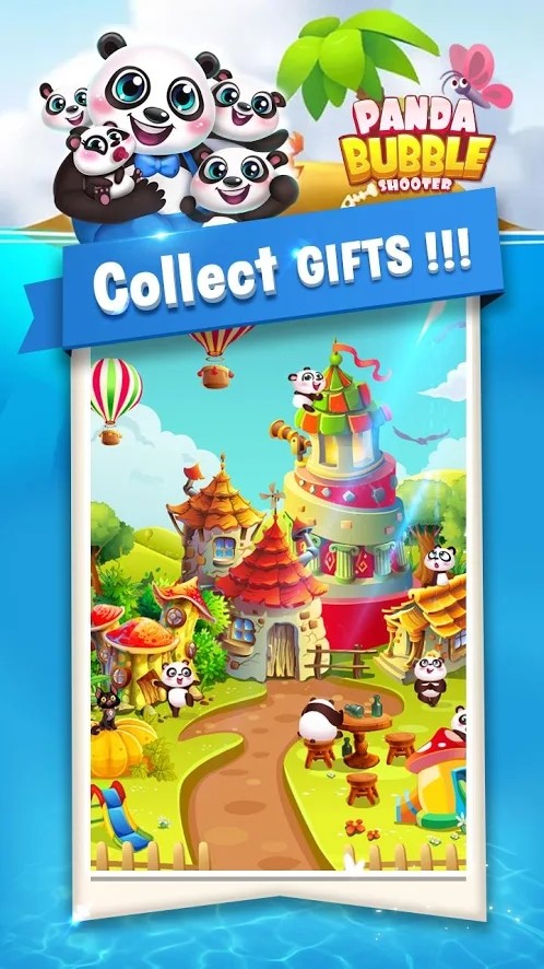 2.闯关消除赚金币,购买可爱熊猫和装饰,帮助它打造美丽新家园。