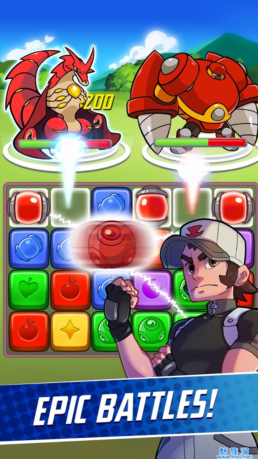 3.每个怪物都有独特技能,宝石匹配获得源源不断的能量,技能释放给予敌人毁灭性的打击。