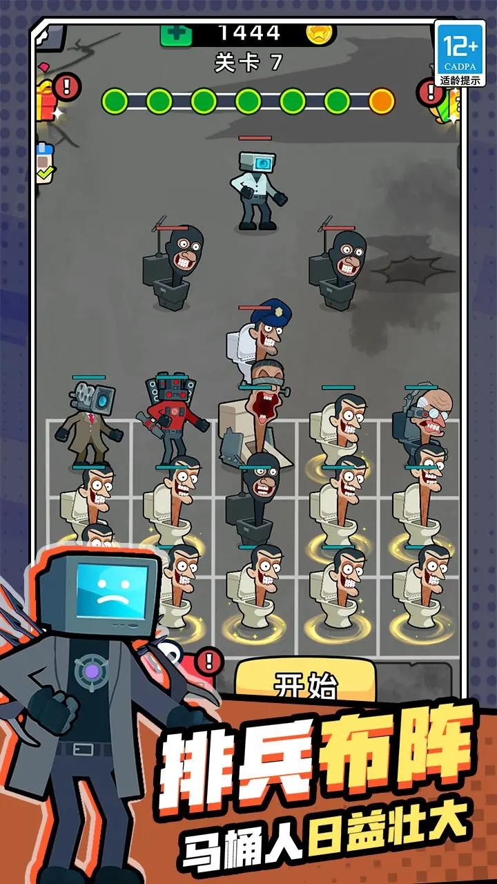 马桶人决战监控人是一款结合了合成进化、策略塔防、马桶人等元素的手机游戏,游戏中拥有两个阵容,分别为马桶人和监控,玩家可以选择一方阵营加入,通过不断的合成低级马桶人或者监控人来让它们升级为更加强大的变异人,用它们来抵挡敌人的进攻,守护营地的安全。