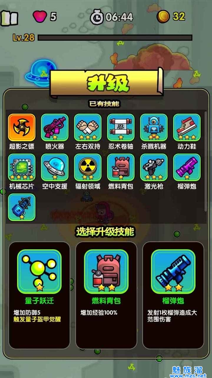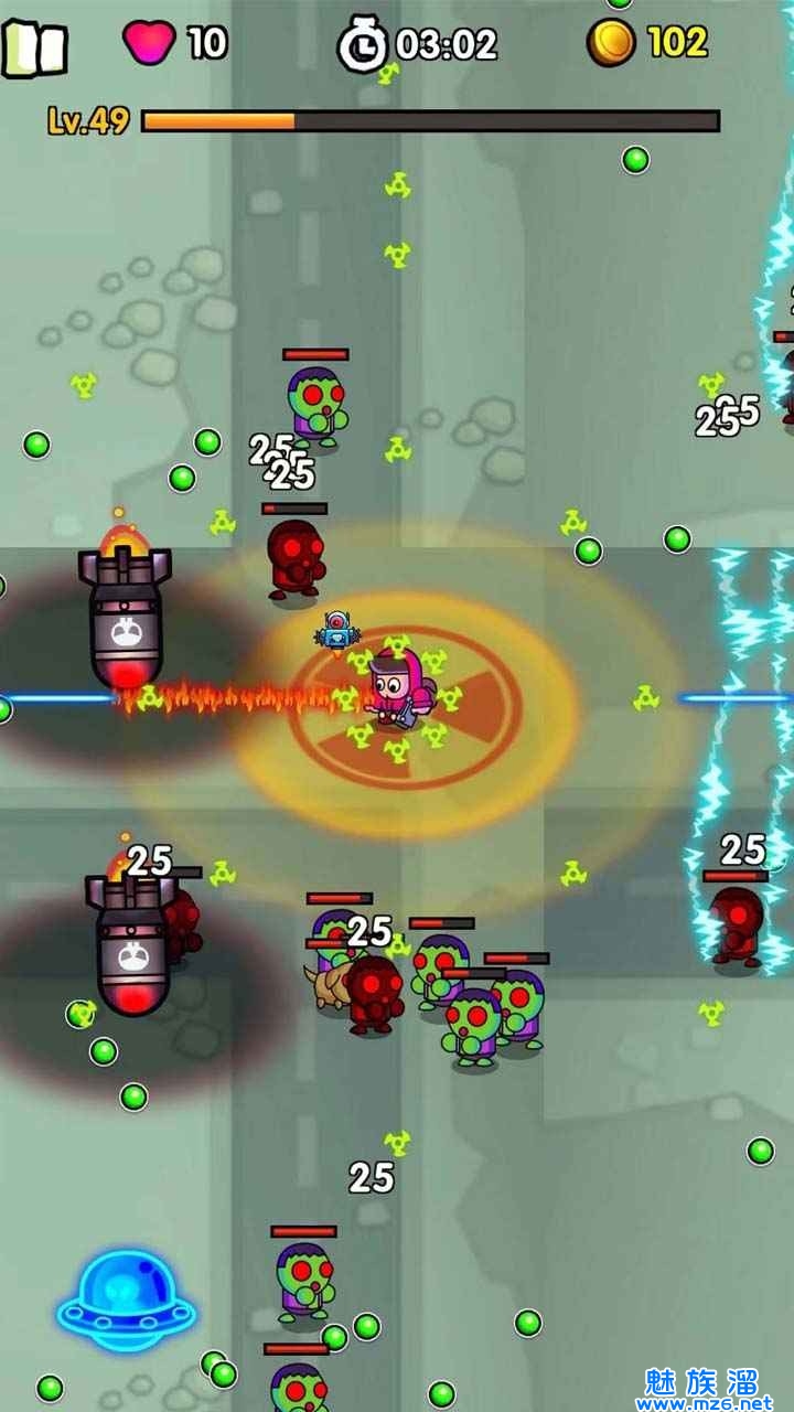 4.游戏风格的画面中,进行激烈的战斗,击败各种类型的僵尸。