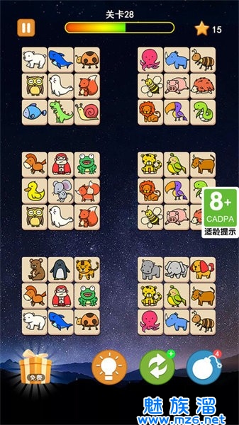 3.关卡内还有炸弹、洗牌和提示等道具帮助你更好地完成挑战;