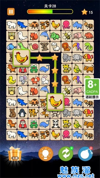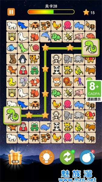 2.成功将全部可爱的小动物们连线消除即可进入下一关游戏;