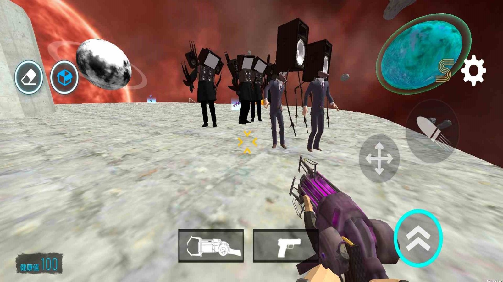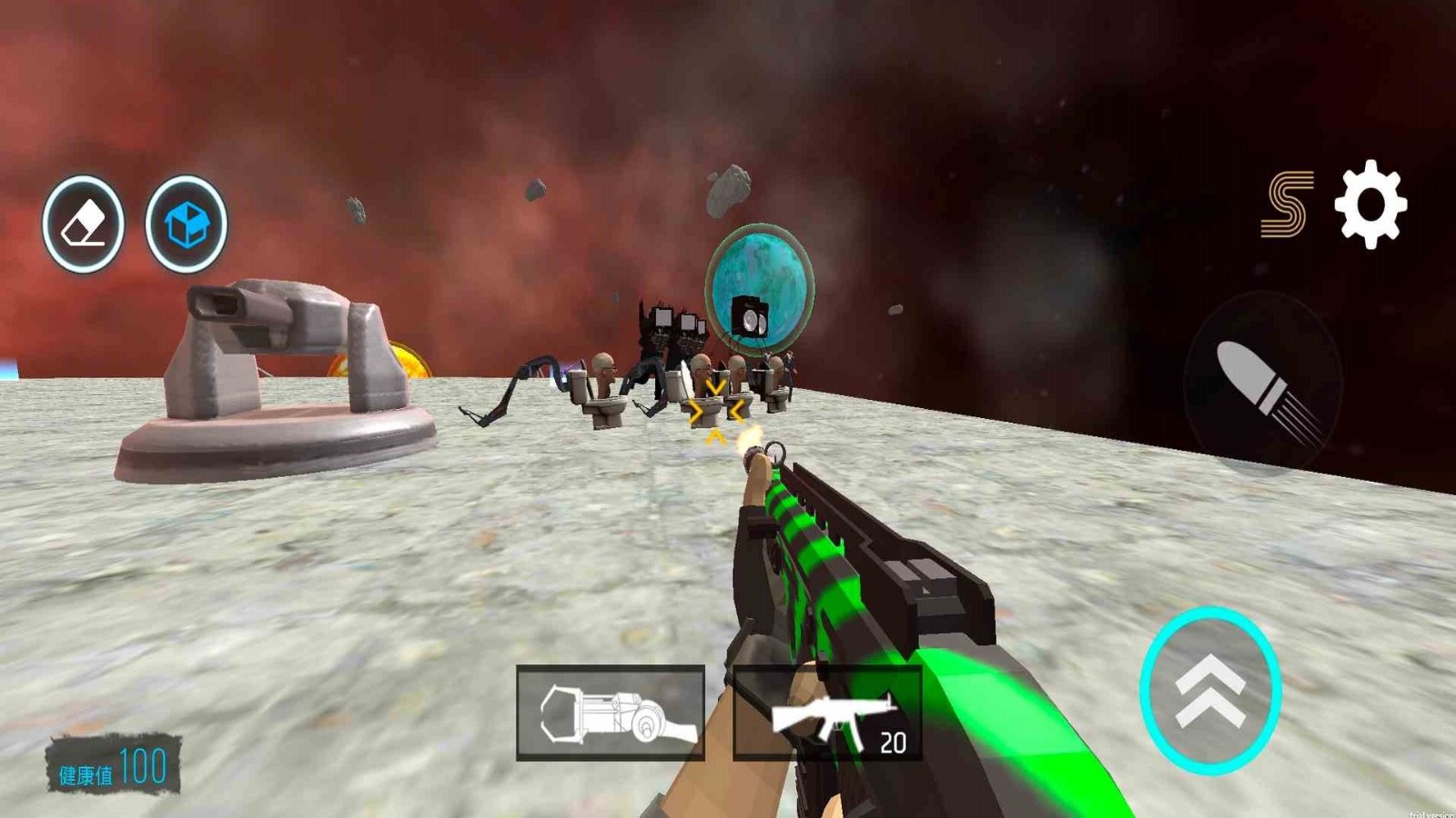1、合理分配你的资源,操控角色去通过跳跃和射击去完成对战。