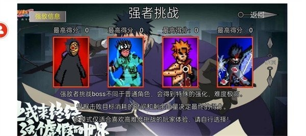 2、新增巅峰强者人物:晓鼬超。(击败对应强者挑战解锁,下架巅峰强者带土)
