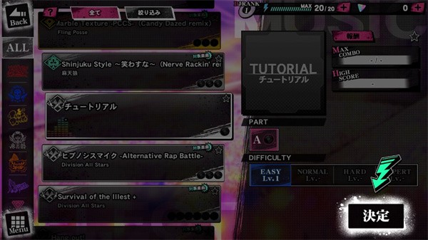 跟传统日系音游不同,催眠麦克风日服手游的判定线是圆盘型,符合官方raper的设定。在游戏中玩家将以音乐作为武器,池袋、横滨、涩谷、新宿等各区域代表的MC组合,使用说唱进行对决,当然,你也可以依据自己的喜好来选择游戏的难度,这种趣味性的玩法可以极大地勾起用户的玩性,并且游戏不卡顿,打击感强,搓碟游戏不考虑一下吗?