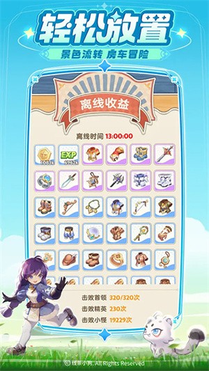挂机养生坐享离线收益。变强只需空闲时间打开手机回来看看新装备,摸头投喂一下麦乐兽。但若静下心来体验房车旅途中遇到各式景色,朝夕光影流转在天地万象间,旅途中的故事笔记也能让你流连忘返。