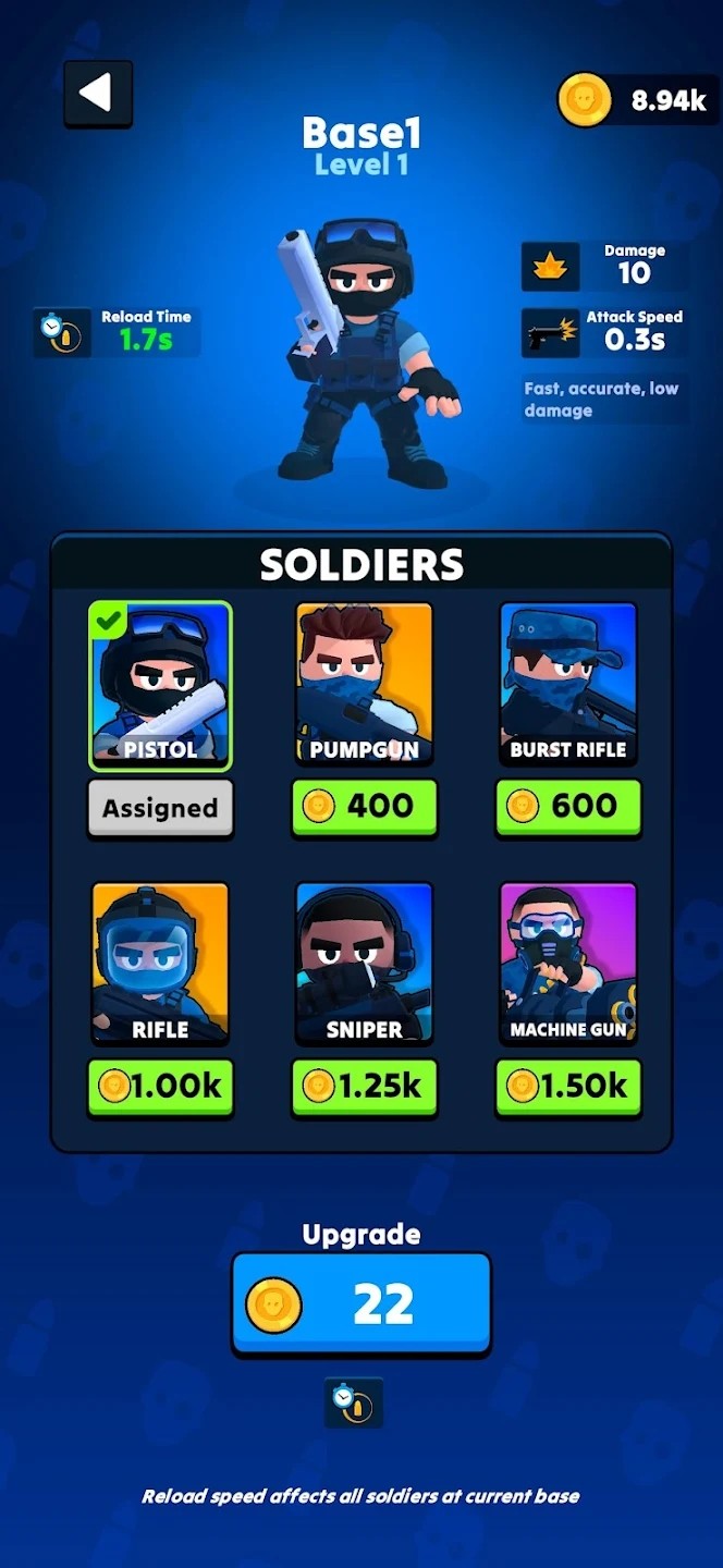 4.目标是在僵尸到达基地之前将其击落,但每个士兵必须先给基地重新装填弹药。一旦部署,士兵只能在指定范围内开火。