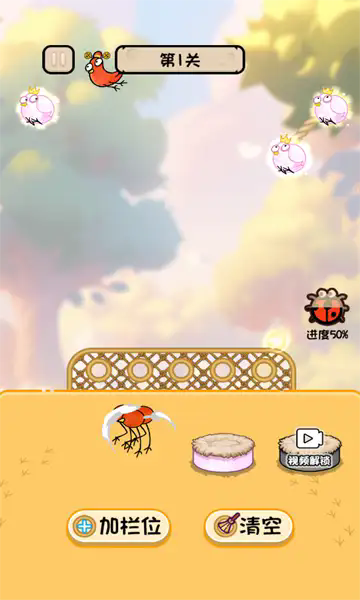 1、只需轻触屏幕,连接三个及以上相同小鸡即可消除,规则简单,乐趣无穷。