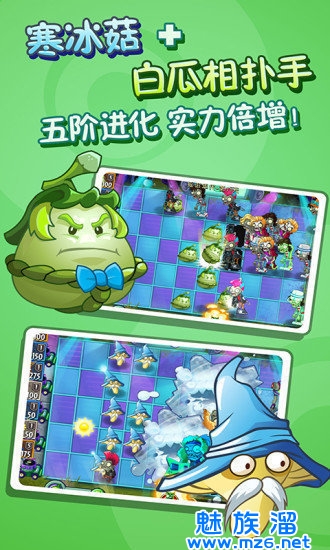 全新植物和僵尸登场,毒液豌豆射手减速僵尸造成毒伤。