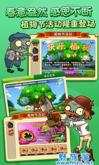 植物防守僵尸,玩家需要选择并布置不同种类的植物,在自己的花园中防守僵尸的进攻。
