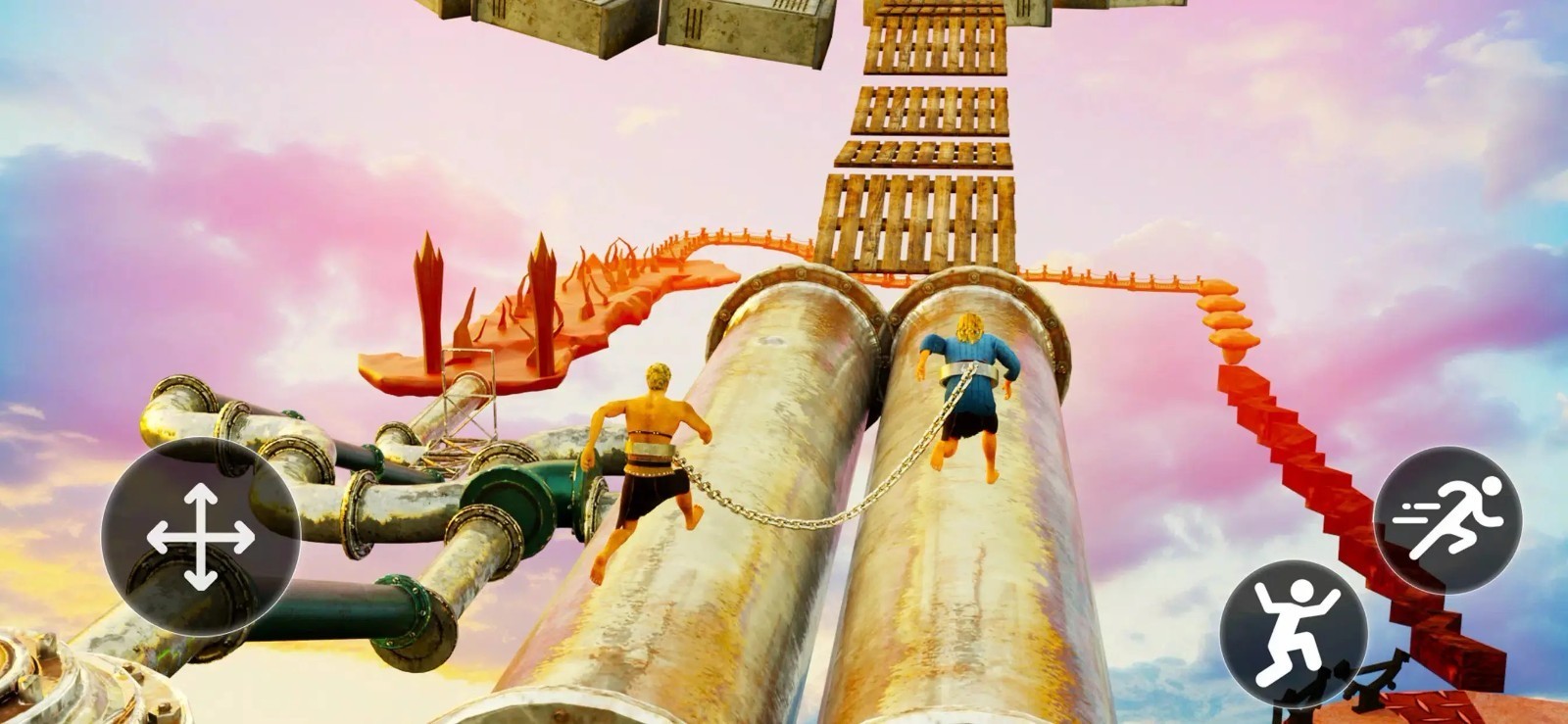 链在一起汉化版是一款非常魔性的闯关小游戏,游戏支持联机玩法,玩家可以和自己的朋友一起开启闯关挑战。游戏中玩家将会被链条绑在一起,需要非常协调的动作才能保证能够顺利突破关卡,只要有一名玩家动作不协调,其他玩家就会被一起拉进深渊。
