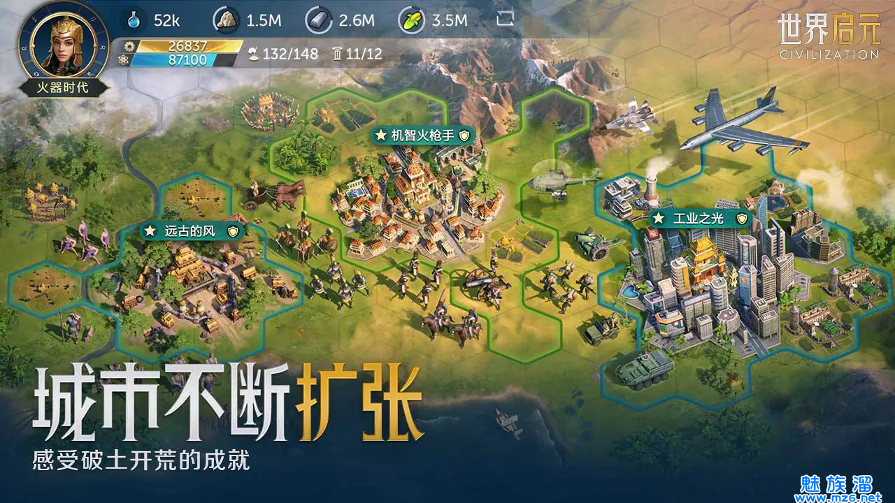 以发育为主,可以获取大量的资源,不太会遇到资源匮乏的情况,但是前期的兵力会比较薄弱,发生战斗的话会比较容易失败。1.文明正版1p授权,玩家能在这里体验到和文明相似的玩法