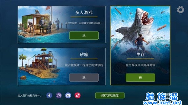1、首先进入海洋游牧者游戏,这里有两种模式玩法,分别是砂箱:在沙盒模式下构建您的梦想筏;生存:在生存模式中挑战海洋;多人游戏:与您的朋友一起创建您独特的木筏;