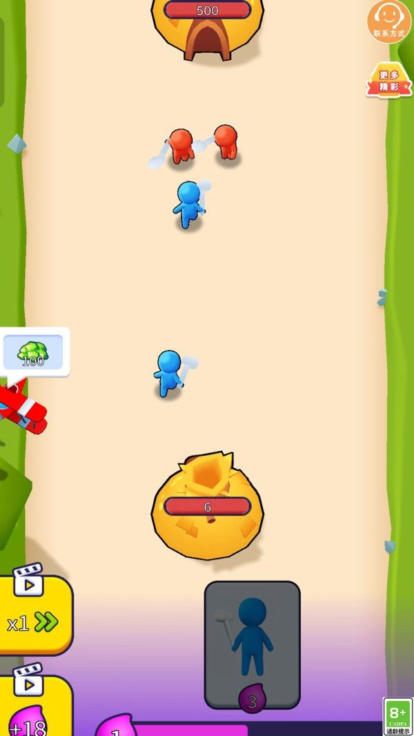 我的军团超猛全新打造的一款小人塔防对战游戏,游戏当中有着村民、长矛人、俱乐部人三种士兵,玩家能够使用金币解锁这些士兵,带来士兵在这里面抵御敌人,击杀所有的对手顺利的通过,我的军团超猛当中可以使用金币来提升能源生产速度,让你能够招募更多士兵!