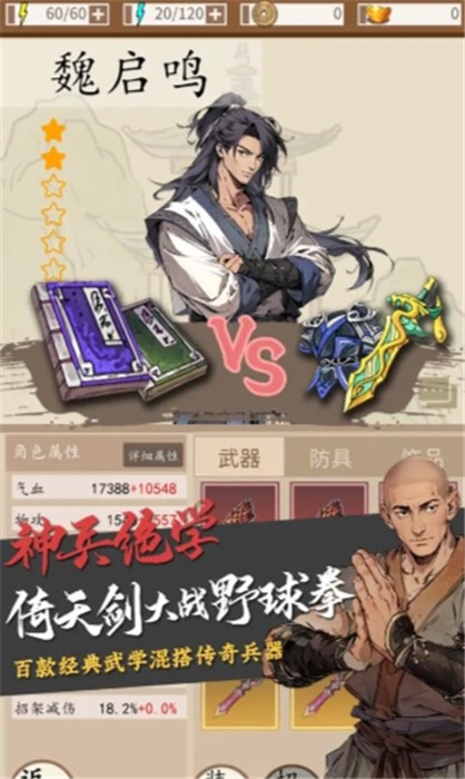 2、百款经典武学混搭传奇兵器,体验不一样的闯关游戏。