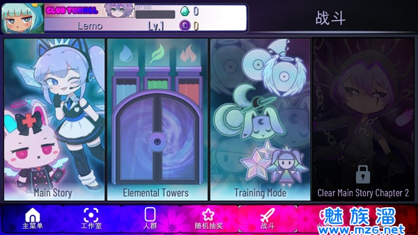 在这个小游戏中Lemo和Yuni两人会以一组舞步来示意接下来要求让玩家输入的箭头(两侧,上下左右)。玩家在本游戏中有5次机会,其中一个出错则扣一次,扣完游戏结束。Easy难度下每1分可获得3倍Bits,每10分可获得一个Gems;Hard难度下每1分可获得4倍Bits,每5分可获得一个Gems。