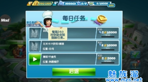 2、顾客吃到自己想要的食物,就会给与金币和小费在桌子上,你需要点击桌子上的货币来获取。