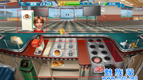 1、打开游戏,选择关卡进入游戏,玩家需根据客人的口味,选择汉堡包,然后将牛排放入到汉堡包里面,最后将食物递给顾客。