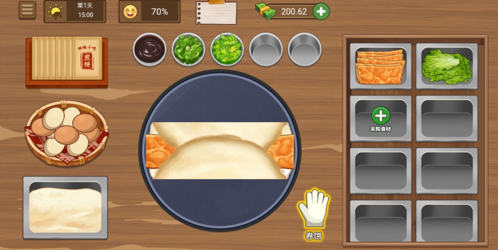 1、逐渐提升小摊人气招揽消费者,赚取资金增加经营收益。
