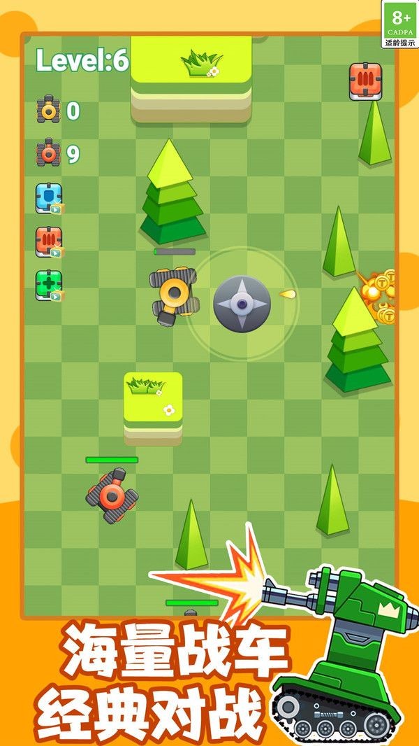 坦克吃鸡对战官网版是一款超好玩的坦克射击类手机游戏,游戏中玩家可以驾驶自己的坦克进行刺激的关卡挑战,不断的去升级自己的坦克来获得更强的实力,游戏采用实时匹配的战斗系统,玩家可以随时加入战斗,与全球的玩家进行实时对战 。体验各种有趣的竞技玩法模式!