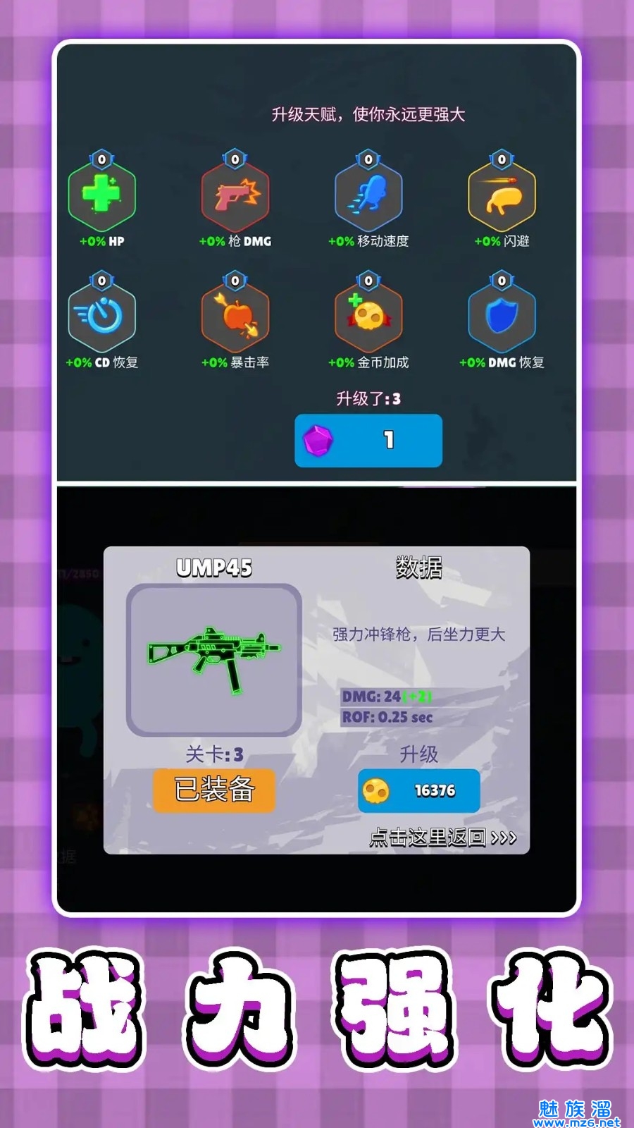1、每局游戏开始前可自由选择初始能力和装备,打造个性化英雄。