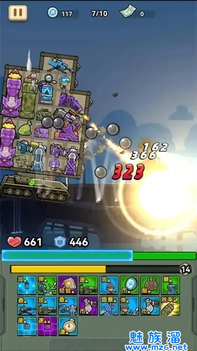 1、收集丰富的组件组合战车,灵活的利用各种武器开始射击,面向敌人热血射击;、