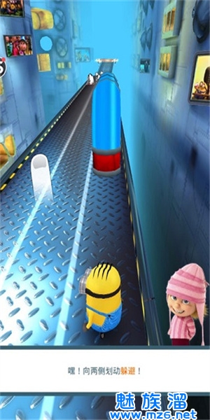 游戏全面融合了电影元素,讲述了小黄人们为了争夺老板格鲁设立的“年度小小兵”奖项,开始的一段搞笑的赛跑竞赛的故事。进入游戏,玩家会发现跑酷场景设置在格鲁的加工厂中,小黄人不仅要闪躲障碍物,还在奔跑途中尽可能吃掉更多香蕉。如果躲避不及时,撞上了障碍物,呆萌的小黄人可是需要缓一会儿才能够醒过来哦。游戏还采用了3D模式,无与伦比的3D效果,视角变化多样,再结合原电影中的有趣的音响效果,让玩家觉得可爱的“小黄人”栩栩如生、触手可及。