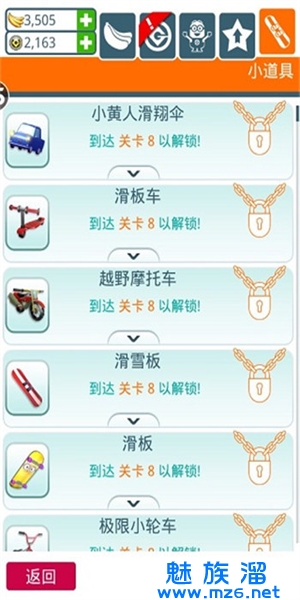 将所有的道具都提升为满级,可以获得50个金钱。