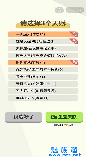 2、选择你的初始天赋