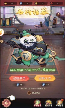 随机招募一个或者多个五将进行比赛挑战,不断升级自己的实力,成为真正的武将