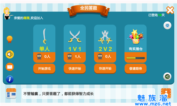 3.答题闯关你能坚持到多少关?只要全部答对就能和其他玩家一起来瓜分奖金。