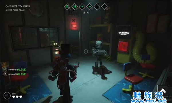 在游戏中,玩家将处于第一人称探索模式,共有7位玩家,而在这七位玩家中,有一名玩家会挑选为怪物,六位玩家当成幸存者,当然玩家也可以自行选择幸存者还是怪物阵容。幸存者的任务是通过解谜来获得玩具部件,并把它放在玩具机里,合成巨大玩具搬到火车上逃离,而怪物的任务是把所有玩家给击倒就可赢得胜利!游戏过程会伴随着非常低沉且恐怖的音乐,可以给玩家很好的游戏体验感。